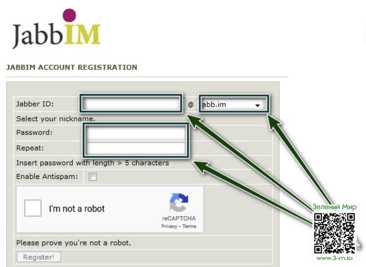 Лично я использую сервер https://jabb.im/reg/ , на его примере сейчас покажу как и что делаем.