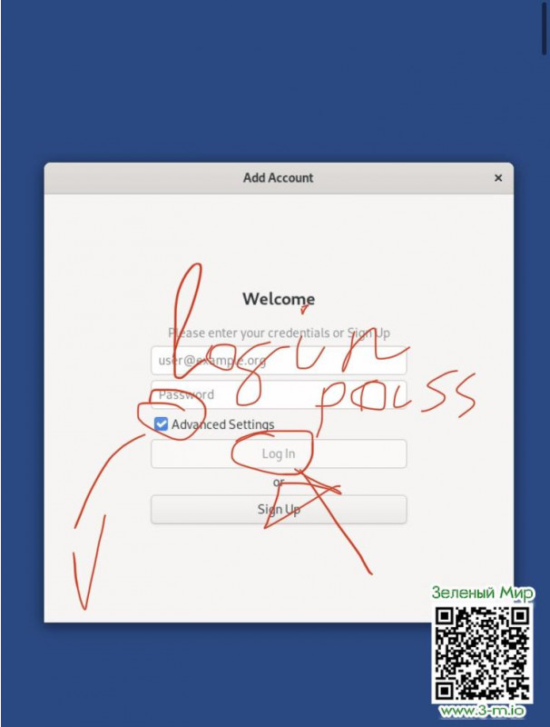 1. На этапе входе в аккаунт вводим свои учетные данные и поставьте флажок напротив “Advanced settings”, затем нажимаем Log In.