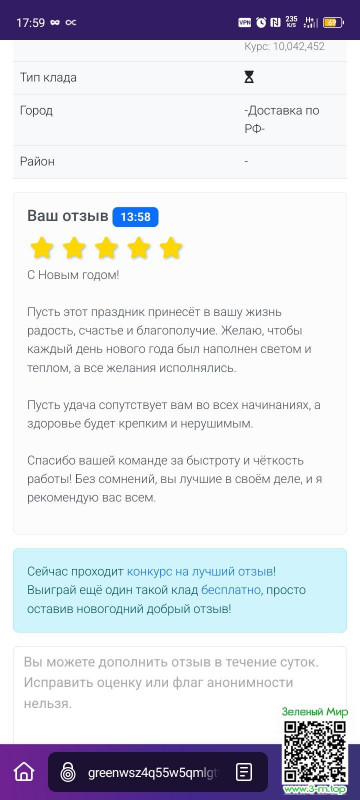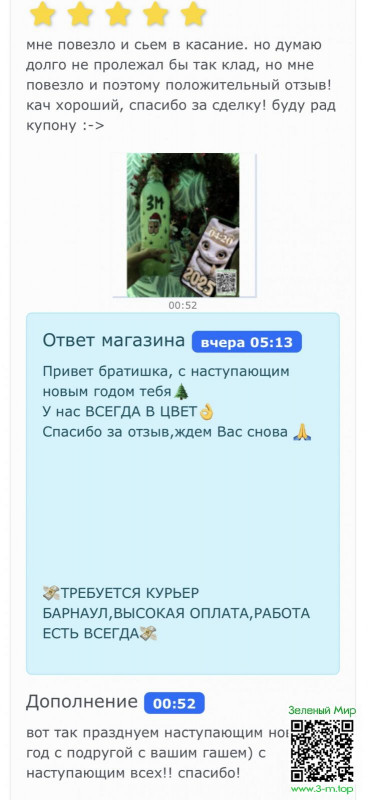 Заказ #346648 Всех с наступающим!!! Желаю!!! что бы у всех ,всегда была ёлочка, которая будет давать вкусные и сильные плоды!!!)))
