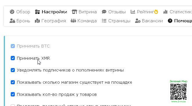 Магазинам: приём Monero включается в Настройках магазина (нужно право на управление настройками).